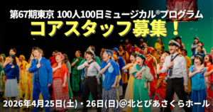 再開記念公演シリーズを経て開催された57期東京・58期関西・61期九州の「100人100日ミュージカル®︎プログラム」ではキャスト100人を達成できなかったにも関わらず、「再開記念公演シリーズ」では開催がなかった名古屋で、誰よりもキャスト集めに奔走し、誰よりも満席づくりにこだわり、そして、誰よりも作品のメッセージを社会に届けることにこだわり抜き、いきなりキャスト100人を達成し、満席の舞台を実現した、まさにヒーロー!