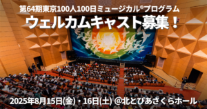 みなさんこんにちは!ミュージカルアワード2024実行委員会の髙光愛恵(まなP)です。 現在、2025年の100人100日ミュージカル®プログラムは、64期東京プログラムは開幕&オーディションを迎え、来月には65期名古屋プ […]